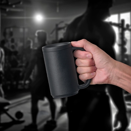 手に取ってわかる驚きの重量感。まるでダンベルのようなジョッキが誕生しました。お酒を口に運ぶ量が自然と減り、飲みすぎません。使えば使うほど筋力トレーニング効果が期待が出来る、かも?