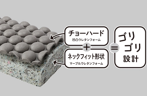 アキレスが独自に開発した2層のウレタンフォームがまるでゴリラに腕枕されているような“ゴリゴリ設計”を実現!