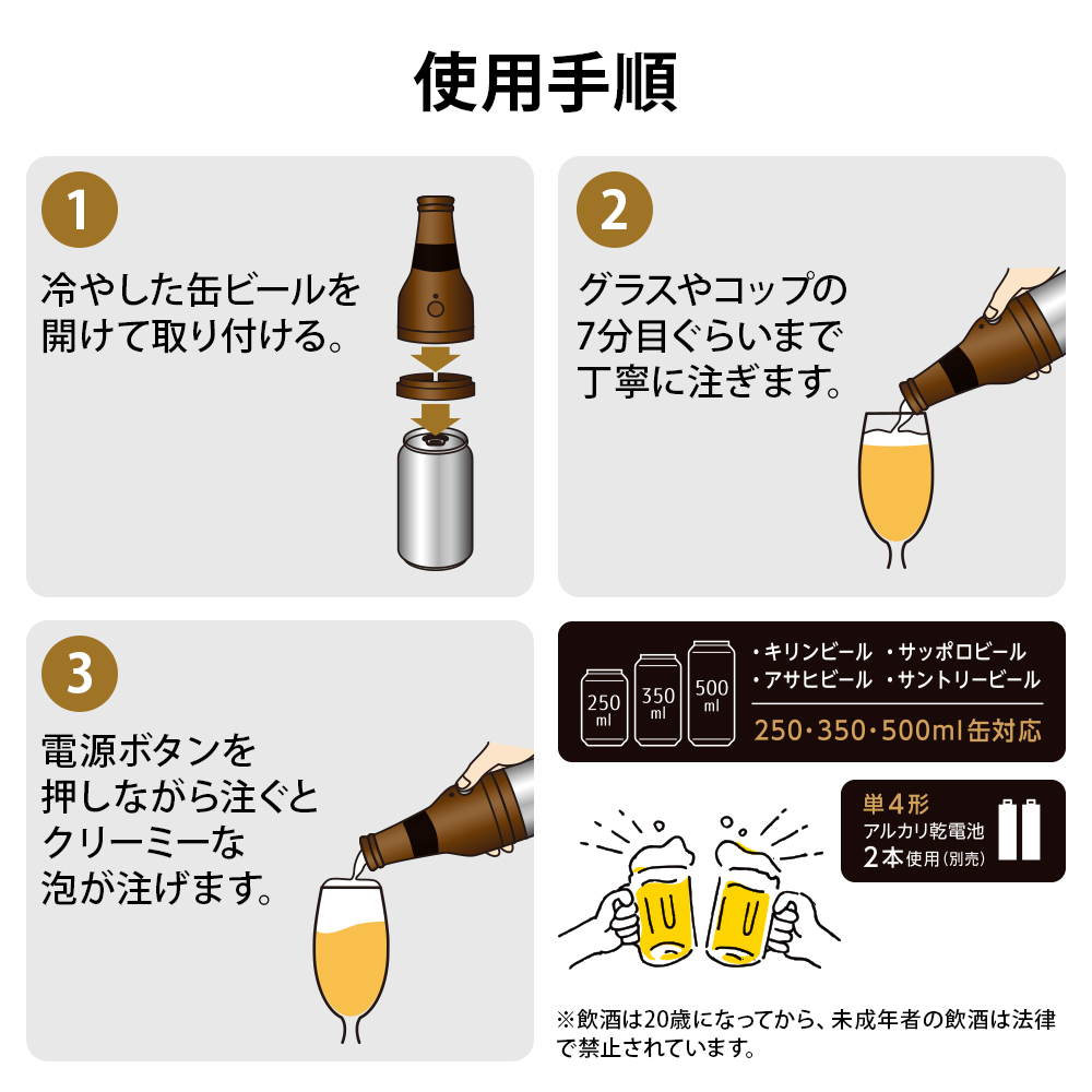W超音波が生み出すクリーミー泡で、いつもの缶ビールがもっとリッチに。