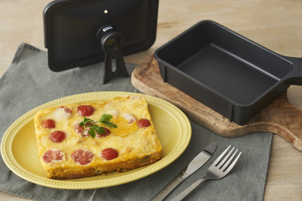 山型食パンがぴったり焼ける。ケチャップ面を先に焼きつけることで香ばしさが増します。さらに野菜を先に炒めることで甘みが出て美味しいピザトーストに仕上がります。