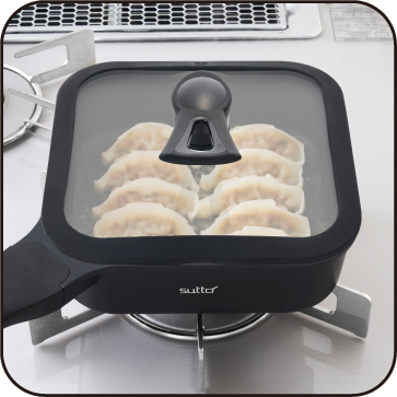 | サイズ(約) | 435×260×130mm(ガラスふた含む全体サイズ) 210×210×60mm(フライパン本体サイズ) |